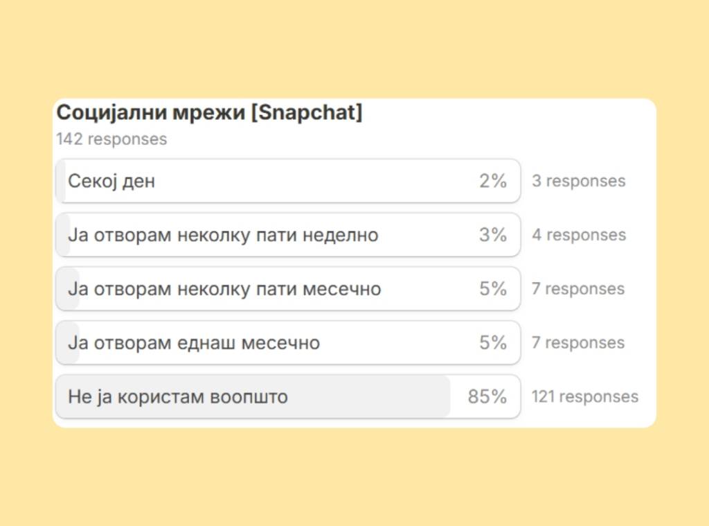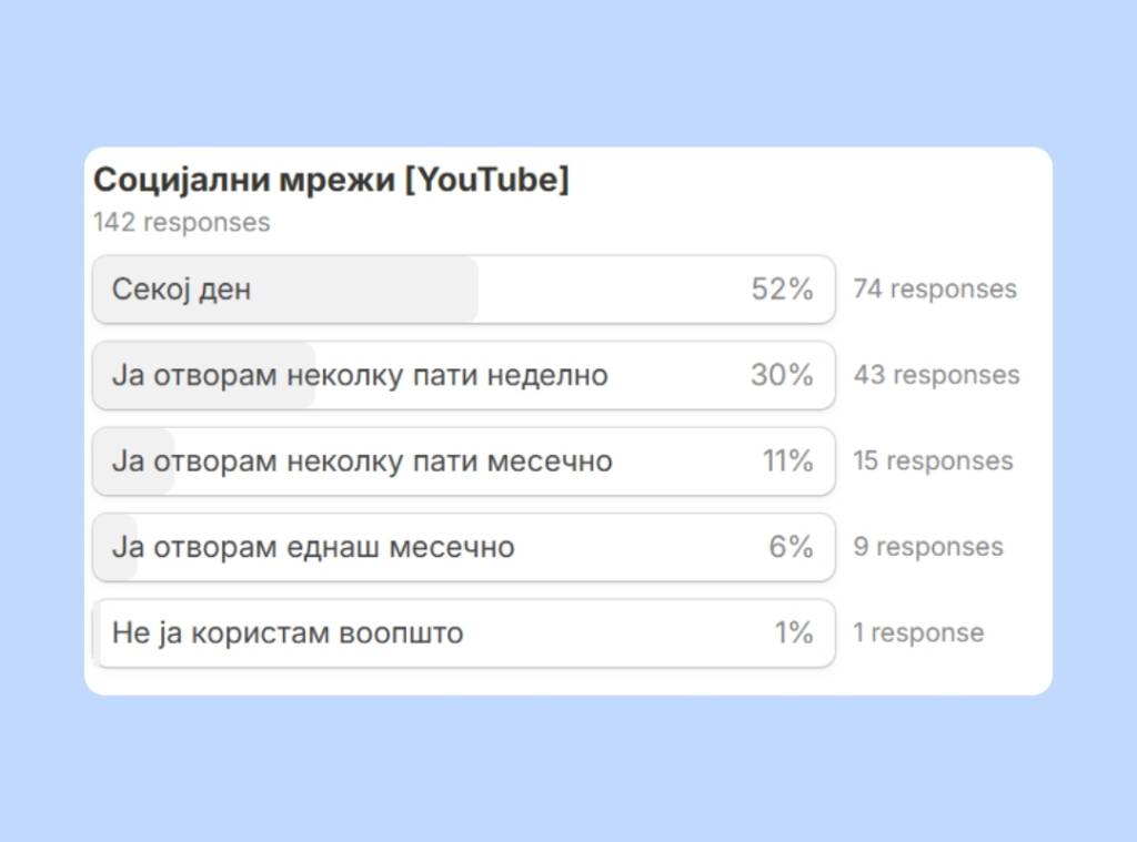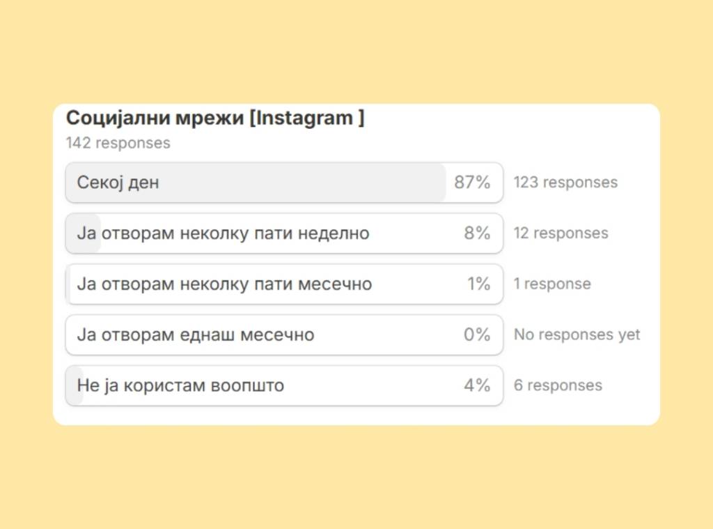 No big surprises on social media habits. Instagram clearly leads the pack, with 87% of respondents using it every day. Facebook follows closely behind, while YouTube takes third place among the apps people open daily.