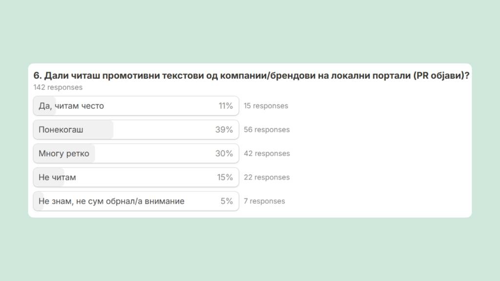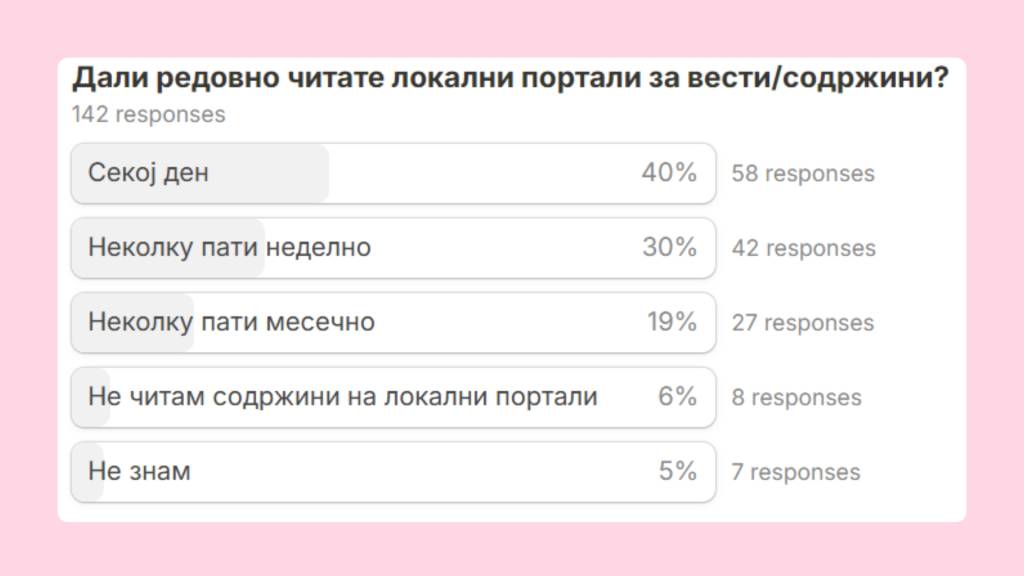 40% of respondents read local content daily, while another 30% do so a few times a week. Company press releases get occasional attention: 39% read them sometimes, while 15% skip them entirely.