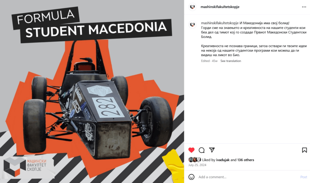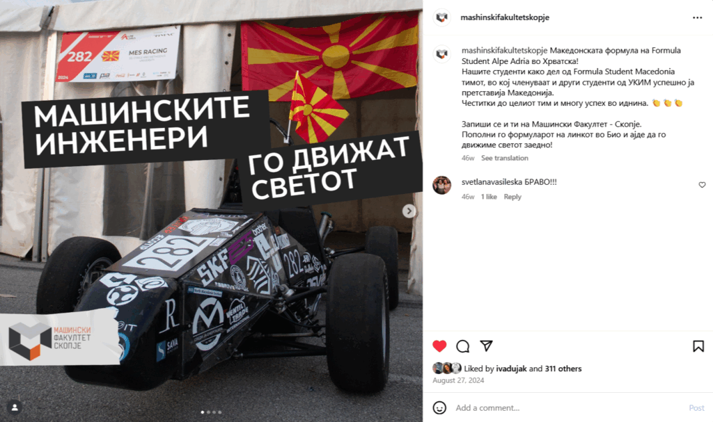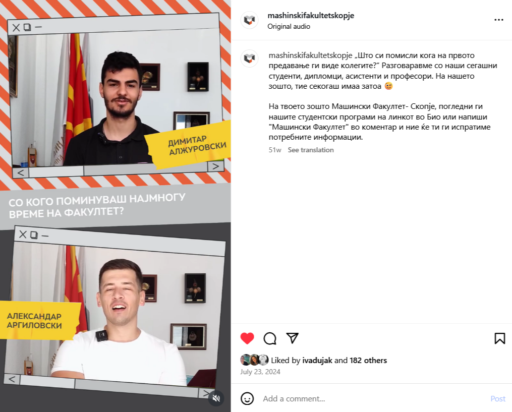 Develop a concept and execute a one-month-long, organic, social media promo campaign aimed at increasing student enrollment in the Faculty of Mechanical Engineering in Skopje.