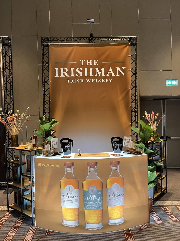 At Skopje Whiskey Fest, where dozens of international brands compete for attention, The Irishman needed a presentation that reflected its refined Irish heritage and stood out through elegance and authenticity. The goal was to design a display that captures the craftsmanship of the whiskey while creating an inviting atmosphere for tasting and engagement.